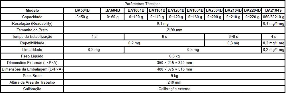 Balança Analítica Eletrônica Série BA-B (Calibração Externa)