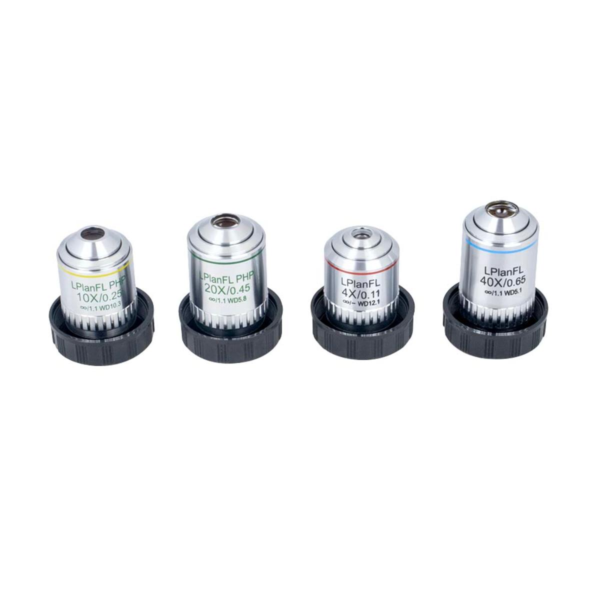 | Objetivas | Infinita de longa distância Plana Acromáticas 4X / 40X |